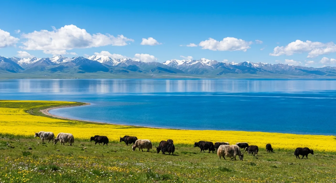 青海,位于中国西北内陆,地处世界屋脊青藏高原的东北部,因境内有中国最大的内陆咸水湖——青海湖而得名。这片72万平方公里的辽阔大地,平均海拔超过3000米,是长江、黄河、澜沧江的发源地,被誉为"三江之源"和"中华水塔"。青海湖是青海的灵魂,这面蓝色的巨大明镜镶嵌在金色的草原和雪山之间,夏季油菜花环绕湖畔、冬季湖面冰封如镜,四季皆美。茶卡盐湖被誉为"天空之镜",湖面完美倒映蓝天白云和人影,如梦如幻。祁连山下的大草原牛羊成群、花海连天,门源的百里油菜花是中国最壮观的花海奇景。可可西里是地球上最后的净土之一,藏羚羊在无人区自由奔跑。塔尔寺的酥油花、壁画和堆绣闻名天下,是藏传佛教格鲁派的圣地。青海还是进藏的重要门户——青藏铁路从西宁出发,穿越柴达木盆地和可可西里,直抵拉萨,被称为"天路"。这里的天空湛蓝如洗、空气纯净透明、星空璀璨无比,是逃离城市喧嚣、洗涤心灵的绝佳之地。